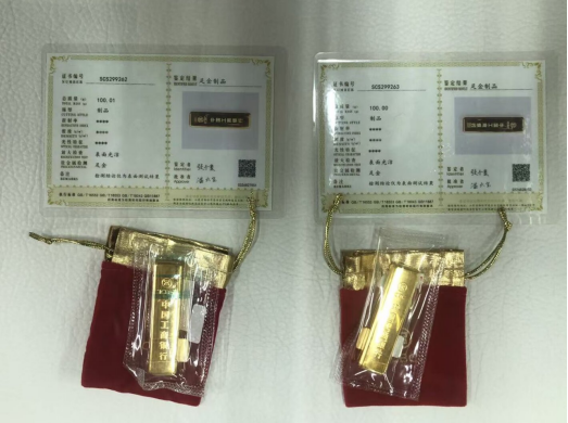 标有“老庙黄金”字样,千足金 |
