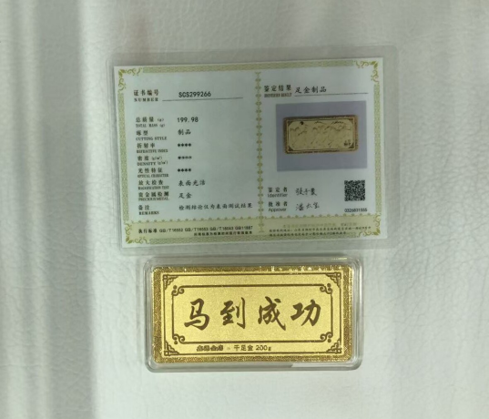 标有“马到成功”字样,千足金 |